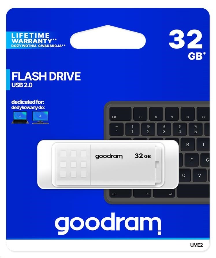 Kód: 490147Prodejní číslo: UME2-0320W0R11GOODRAM Flash Disk 32GB UME2, USB 2.0, bílá