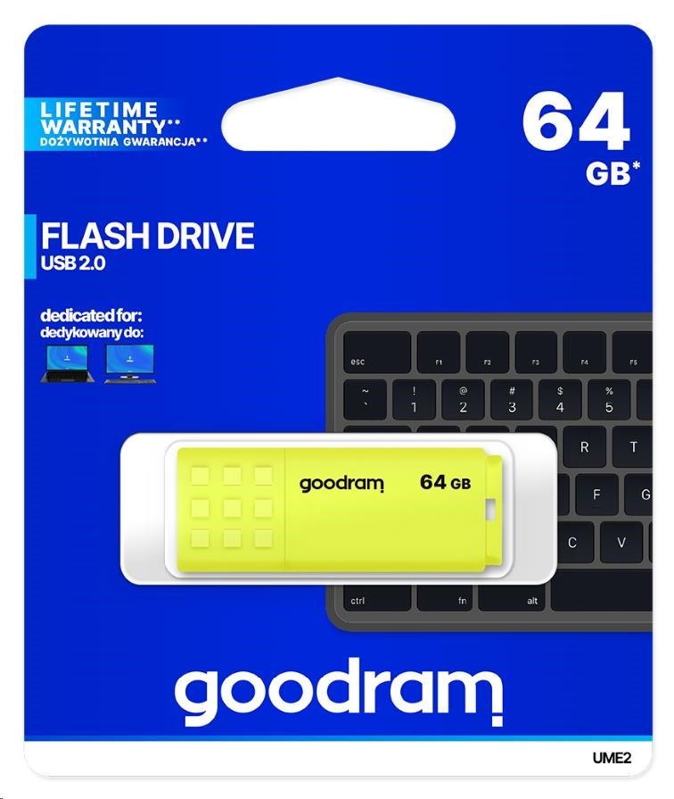 Kód: 490153Prodejní číslo: UME2-0640Y0R11GOODRAM Flash Disk 64GB UME2, USB 2.0, žlutá
