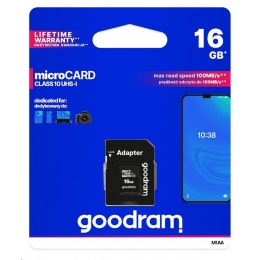 Kód: 490123Prodejní číslo: M1AA-0160R12GOODRAM MicroSDHC karta 16GB M1AA, UHS-I Class 10, U1 + adaptér