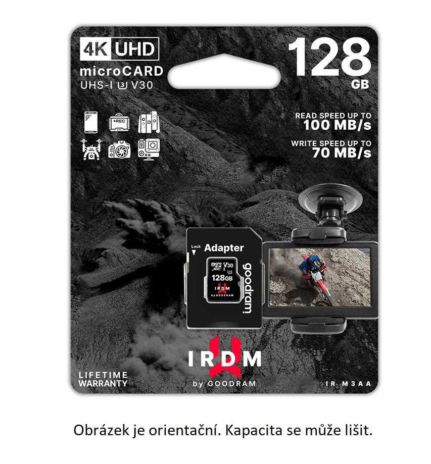Máte k produktu dotaz? Zeptejte se nás.Hodnocení produktu GOODRAM microSDXC karta 64GB IRDM (R:100/W:70 MB/s), UHS-I Class 10, U3, V30 + Adapter