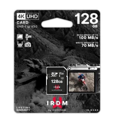 GOODRAM SDXC karta 128GB IRDM (R:100/W:70 MB/s) UHS-I U3Typ karty:SDXC; Kapacita uložiště:128 GB.