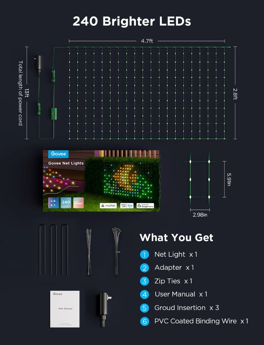 Govee RGBIC venkovní světelná síť - 1,43 x 0,85m Matter