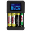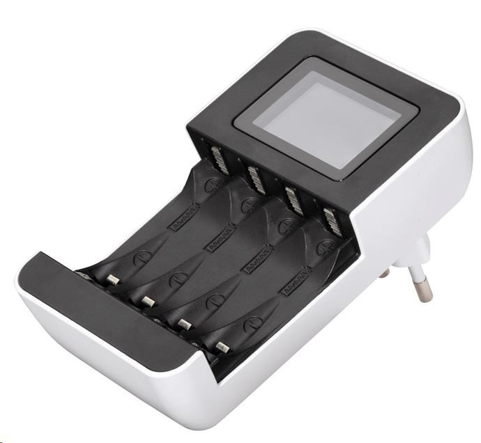 - zásuvková nabíječka pro 1-4 NiMH akumulátory AA (mignon) nebo AAA (micro) - 4 individuální nabíjecí sloty, každý akumulátor je monitorován a nabíjen samostatně (možnost nabíjení akumulátorů různého typu a kapacity současně) - LCD displej s grafickým zobrazením průběhu nabíjení - nabíjení řízené mikroprocesorem (ochrana proti přebíjení a přehřátí akumulátorů) - automatické ukončení nabíjení pomocí detekce Delta-U - bezpečnostní časová pojistka - detekce vadných akumulátorů - ochrana proti nesprávné polaritě Technické parametry: - typ nabíječky: automatická - konstrukce nabíječky: zásuvková (integrovaná síťová vidlice) - typ akumulátorů: NiMH, velikost AA (R6) mignon/AAA (R03) micro - nabíjecí proud: 450 mA (AA)/200 mA (AAA) - napájení: 100-240 V/50 Hz - barva: černá/bílá.