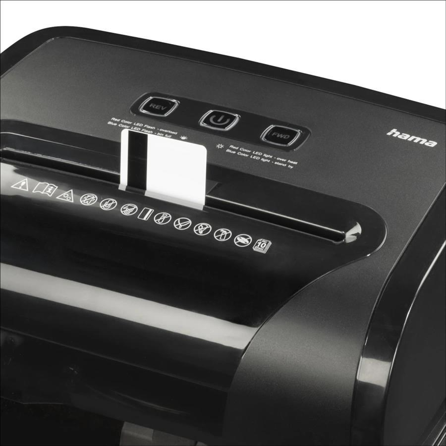 Hama Premium M10+, skartovačka, micro rez, 10 listov, stupeň utajenia P-5, 20 lSkartovaný materiál:Papír; Způsob řezu:Kombinovaný; Stupeň utajení:5.