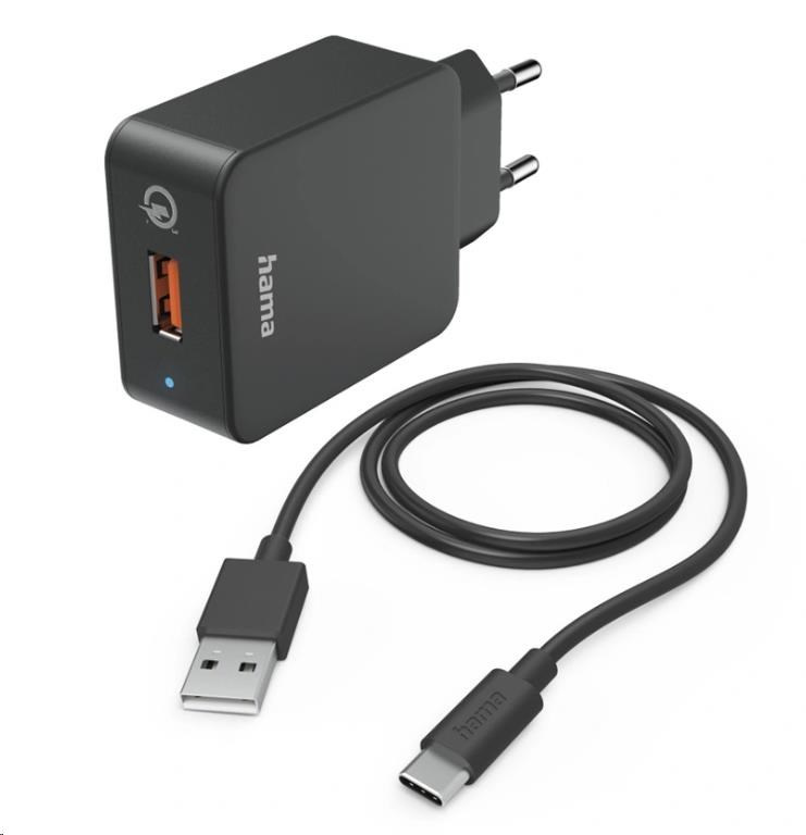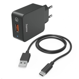 Hama set: rychlá USB nabíječka QC 3.0 19,5 W + kabel USB A-C 1,5 m
