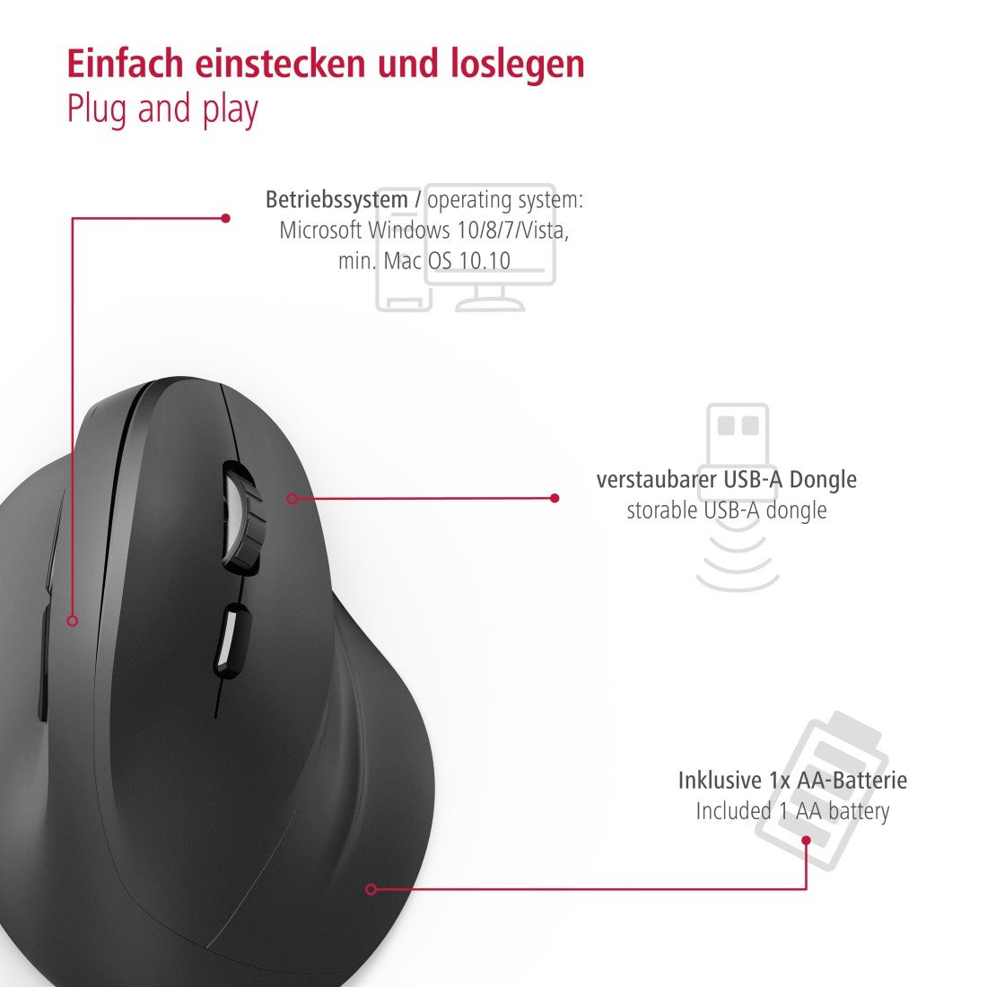 Hama vertikální ergonomická bezdrátová myš EMW-500, 6 tlačítek, černá