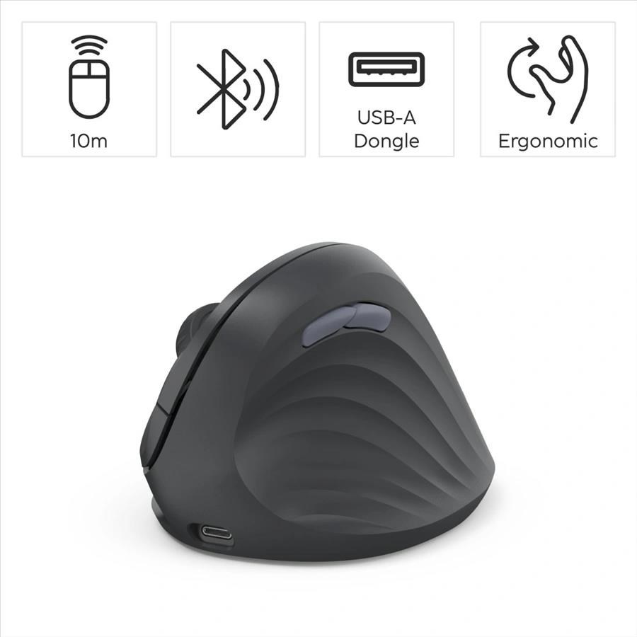 Hama vertikální ergonomická bezdrátová myš EWM-600R, pro praváky, nabíjecí, Multi DeviceRozhraní myši:Bezdrátová Bluetooth, Bezdrátová s USB dongle; Druh myši:Optická; Specifikace myši:4 a více tlačítek, S kolečkem.