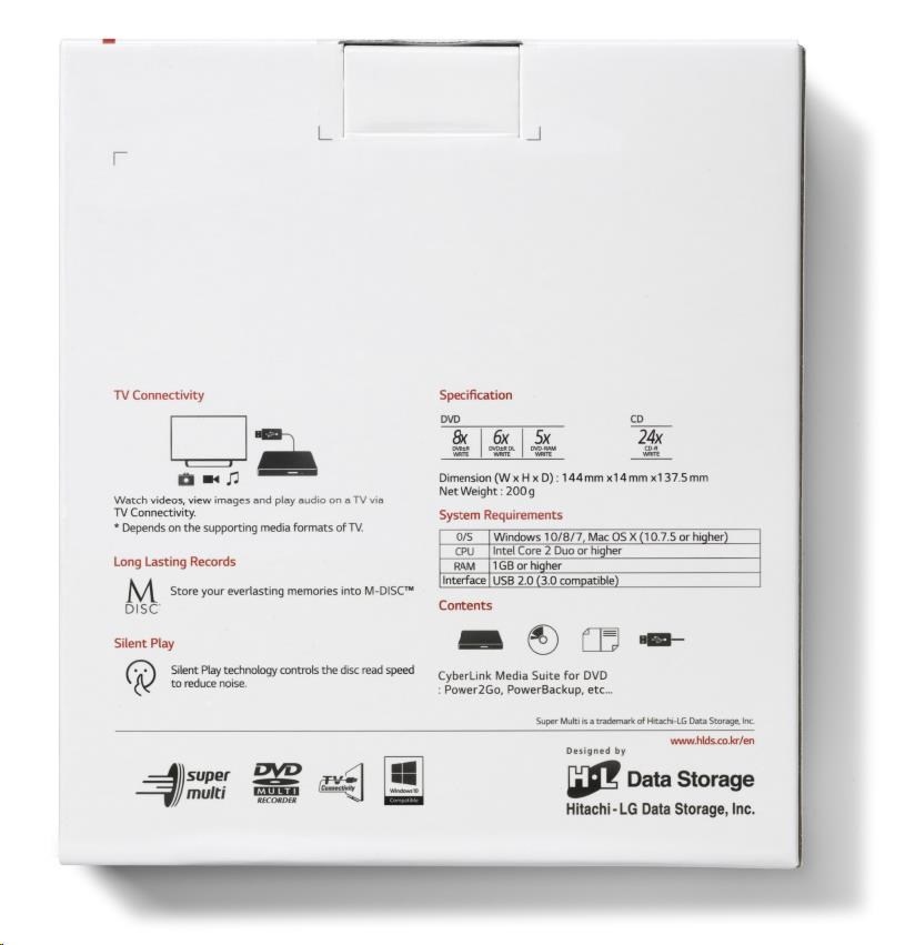 HITACHI LG - externí mechanika DVD-W/CD-RW/DVD±R/±RW/RAM GP60NB60, Slim, Black, box+SWTyp mechaniky:Externí, externí USB 2.0; Druh optické mechaniky:DVD±R/±RW/CD-R/CD-RW/RAM; Rozhraní:USB 2.0.