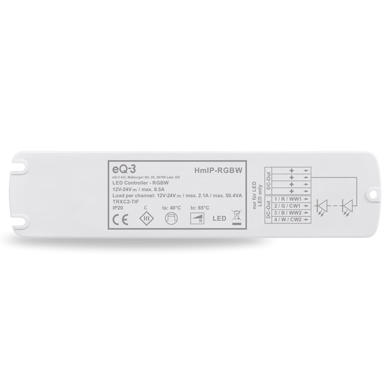 Robustní provedení dělá RGBW LED kontroler (HmIP-RGBW) ideální pro skrytou montáž do dutých příček nebo stropních podhledů. Pro možnost upevnění jsou k dispozici montážní otvory. Kontroler lze napájet 12-24 V DC. Bezdrátová komunikace nabízí možnost instalace bez potřeby druhotné kabeláže. To znamená, že kontroler lze umístit v místě připraveného nebo stávajícího elektrického rozvodu.