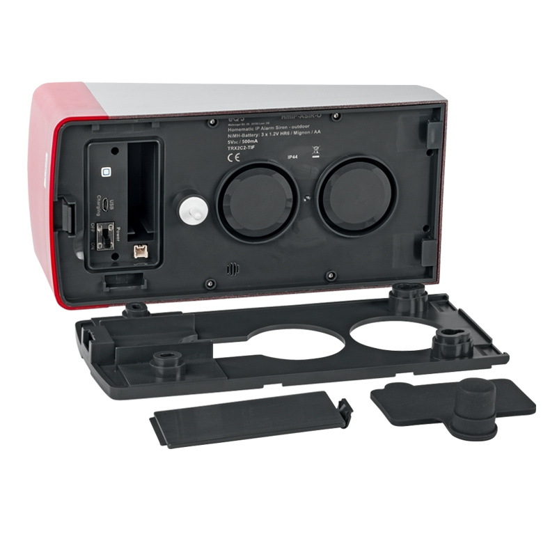 Pokud se narušitel dostane k siréně, sabotážní kontakt spolehlivě zjistí neoprávněnou manipulaci a spustí poplach. Mezipřístrojová komunikace zajistí spuštění poplachu i bez internetového připojení. Dokonce i v případě sabotáže nebo zničení Centrální jednotky (HmIP-HAP) zůstává siréna v režimu poplachu.
