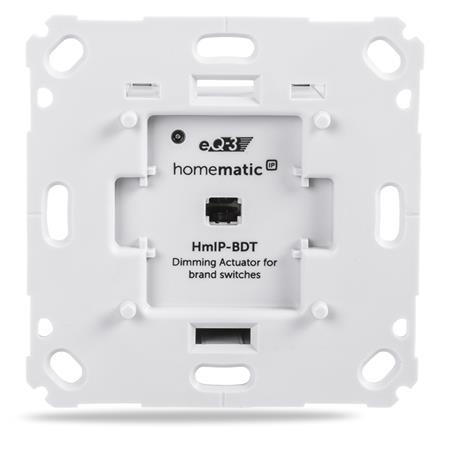 Stmívací akční člen (HmIP-BDT) se montuje do standardní zápustné krabice pod omítku s připojením do sítě 230 V. Bezdrátová komunikace nabízí možnost instalace bez potřeby druhotné kabeláže. To znamená, že akční člen lze umístit v místě připraveného nebo stávajícího elektrického rozvodu sítě 230 V.