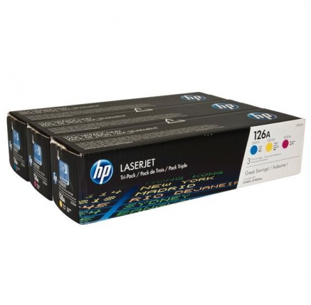 HP 126A Trojbalení originálních tonerových kazet – azurová, purpurová, žlutá