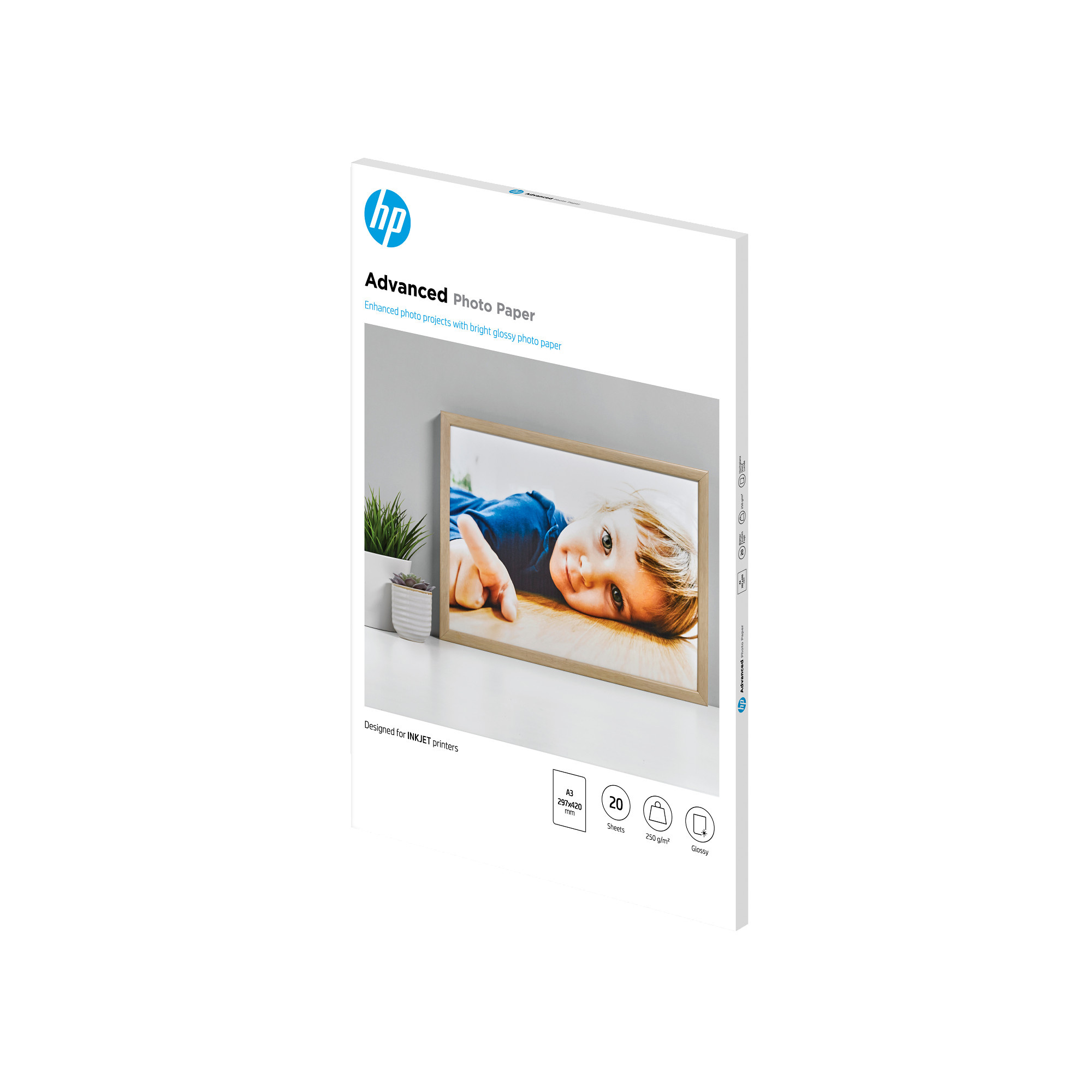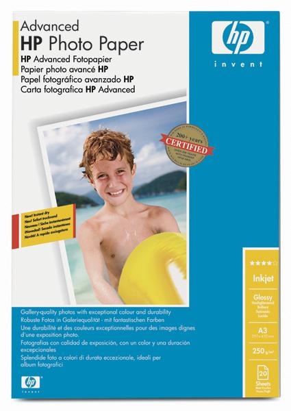 HP Advanced Glossy Photo Paper-20 sht/A3/297 x 420 mm, 10.5 mil, 250 g/m2, Q8697A