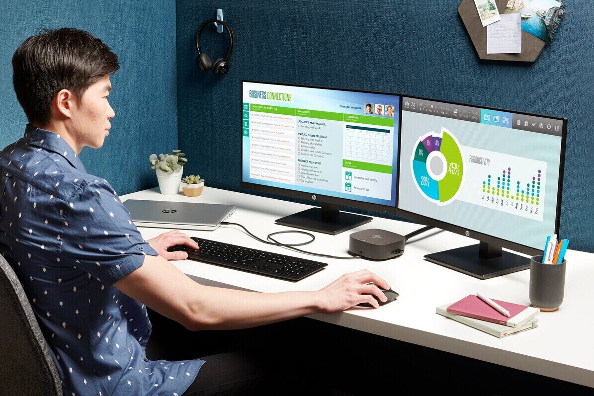 Dokovací stanice HP G5 je plně kompatibilní s většinou notebooků s portem USB‑C nebo Thunderbolt – nejen od HP, ale i od Apple, Dell či Lenovo. Umožňuje snadné připojení celé pracovní sestavy pomocí jediného kabelu. Podporuje až tři displeje současně, a to i ve 4K rozlišení, v závislosti na specifikaci hostitelského zařízení.