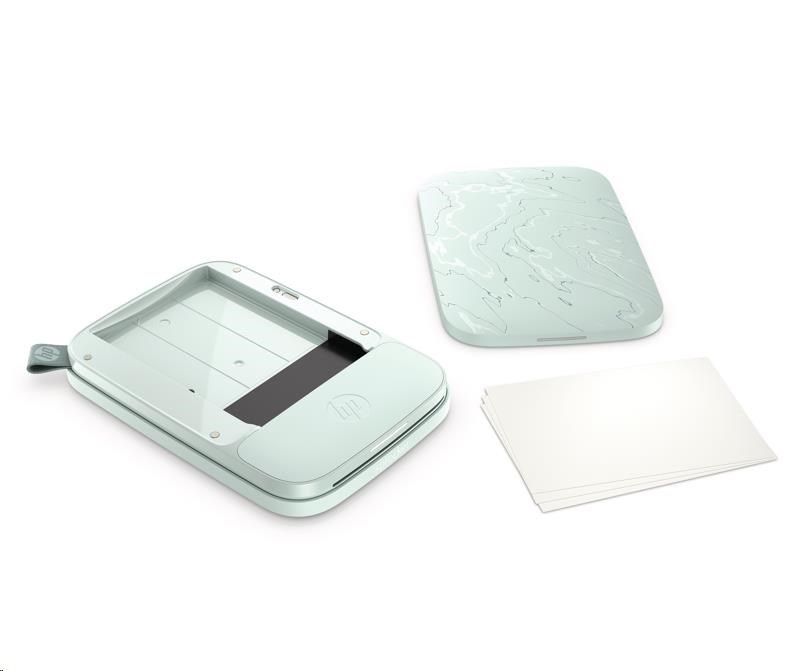 Mobilní kapesní tiskárna. Termální tisk HP ZINK, barevný tisk na fotopapír. Formát: fotopapír 5x8,6 cm, kvalita tisku: 313x400 dpi, rozhraní: Bluetooth 5.0.