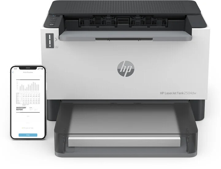 Model HP LaserJet Tank 2504 DW představuje ideální řešení pro zákazníky s potřebou častého tisku v černobílé variantě. Poskytuje velmi úsporný provoz s tiskem v profesionální kvalitě s velmi nízkými náklady na stránku.