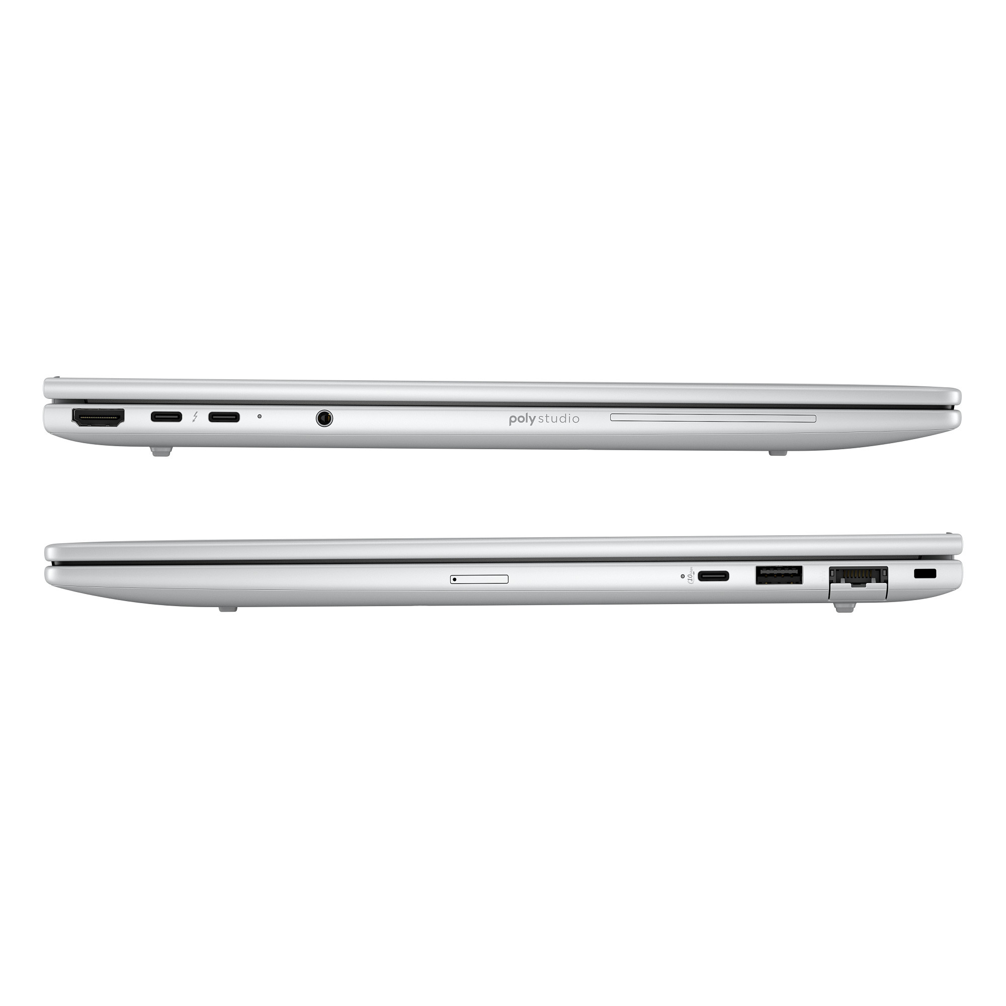 - USB-C s Thunderbolt, USB 3.2, WiFi 7, Bluetooth, HDMI, 5MP IR AI webkamera, čtečka otisků prstů, čtečka karet Smart Card, podsvícená numerická klávesnice, celokovové šasi, zvuk Poly Studio