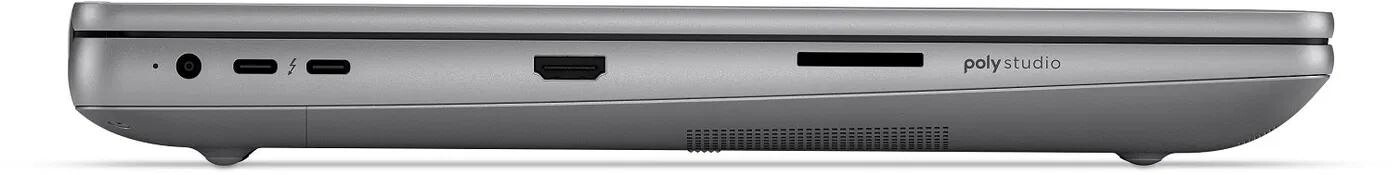 - USB-C s Thunderbolt 5, USB 3.2, WiFi 7, LAN, Bluetooth, HDMI, 5MP IR AI webkamera, čtečka otisků prstů, čtečka karet Smart Card, čtečka SD karet, odsvícená numerická klávesnice, celokovové šasi, zvuk Poly Studio