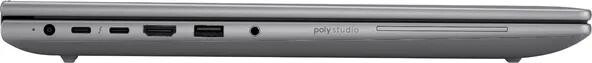 - USB-C s Thunderbolt, USB 3.2, WiFi 7, LAN, Bluetooth, HDMI, Full HD webkamera, čtečka otisků prstů, čtečka karet Smart Card, čtečka SD karet, podsvícená numerická klávesnice, celokovové šasi, zvuk Poly Studio