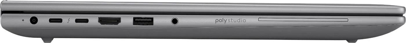 - USB-C s Thunderbolt, USB 3.2, WiFi 7, LAN, Bluetooth, HDMI, IR 5MP webkamera, čtečka otisků prstů, čtečka karet Smart Card, čtečka SD karet, podsvícená numerická klávesnice, celokovové šasi, zvuk Poly Studio