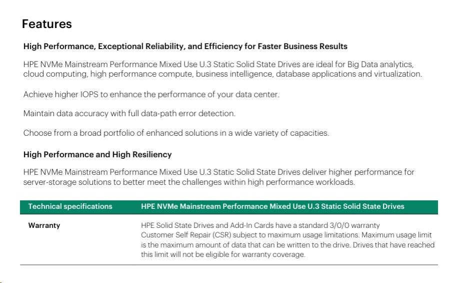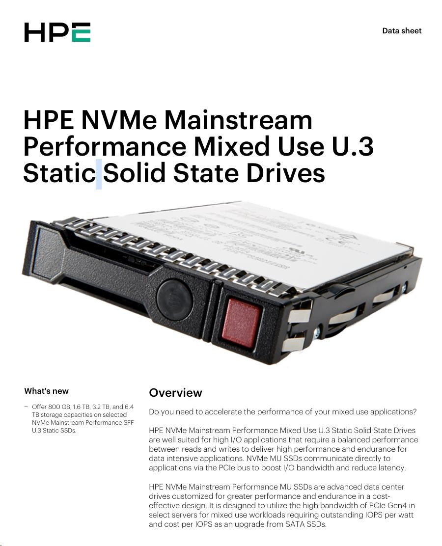 Máte k produktu dotaz? Zeptejte se nás.Hodnocení produktu HPE 3.2TB NVMe Gen4 Mainstream Performance Mixed Use SFF BC U.3 Static V2 Multi Vendor P65015-B21 RENEW