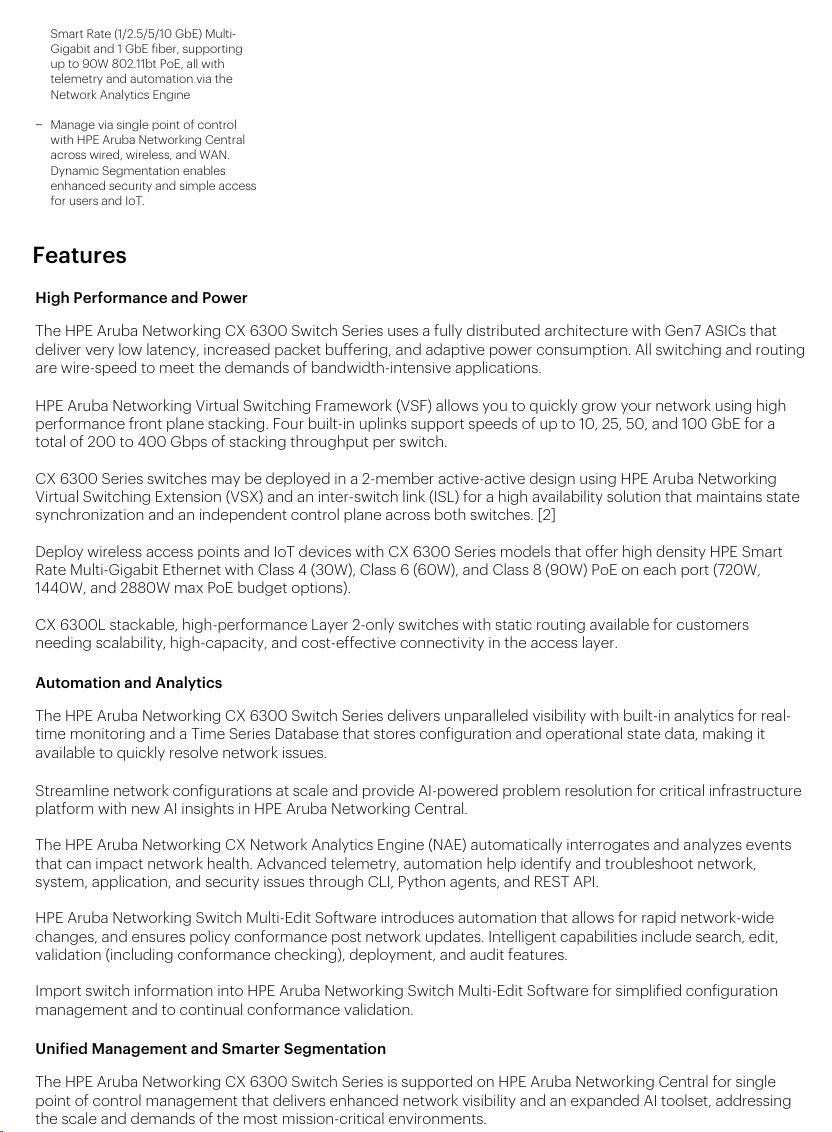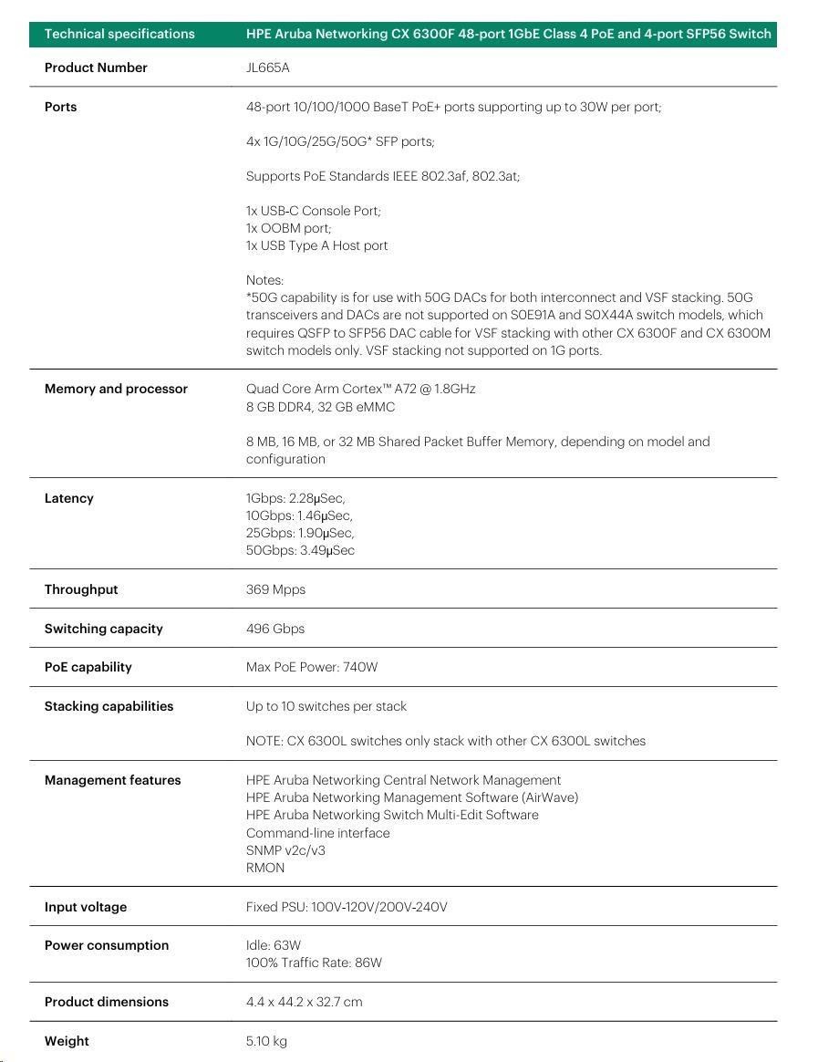Diskuze k produktu HPE Aruba Networking CX 6300F 48-port 1GbE Class 4 PoE and 4-port SFP56 Switch