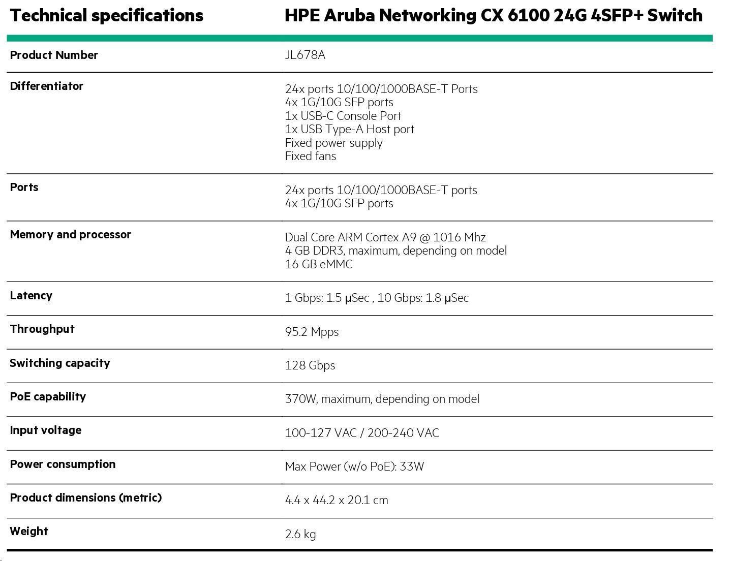 HPE Aruba Networking CX6100 24G 4SFP+ Switch