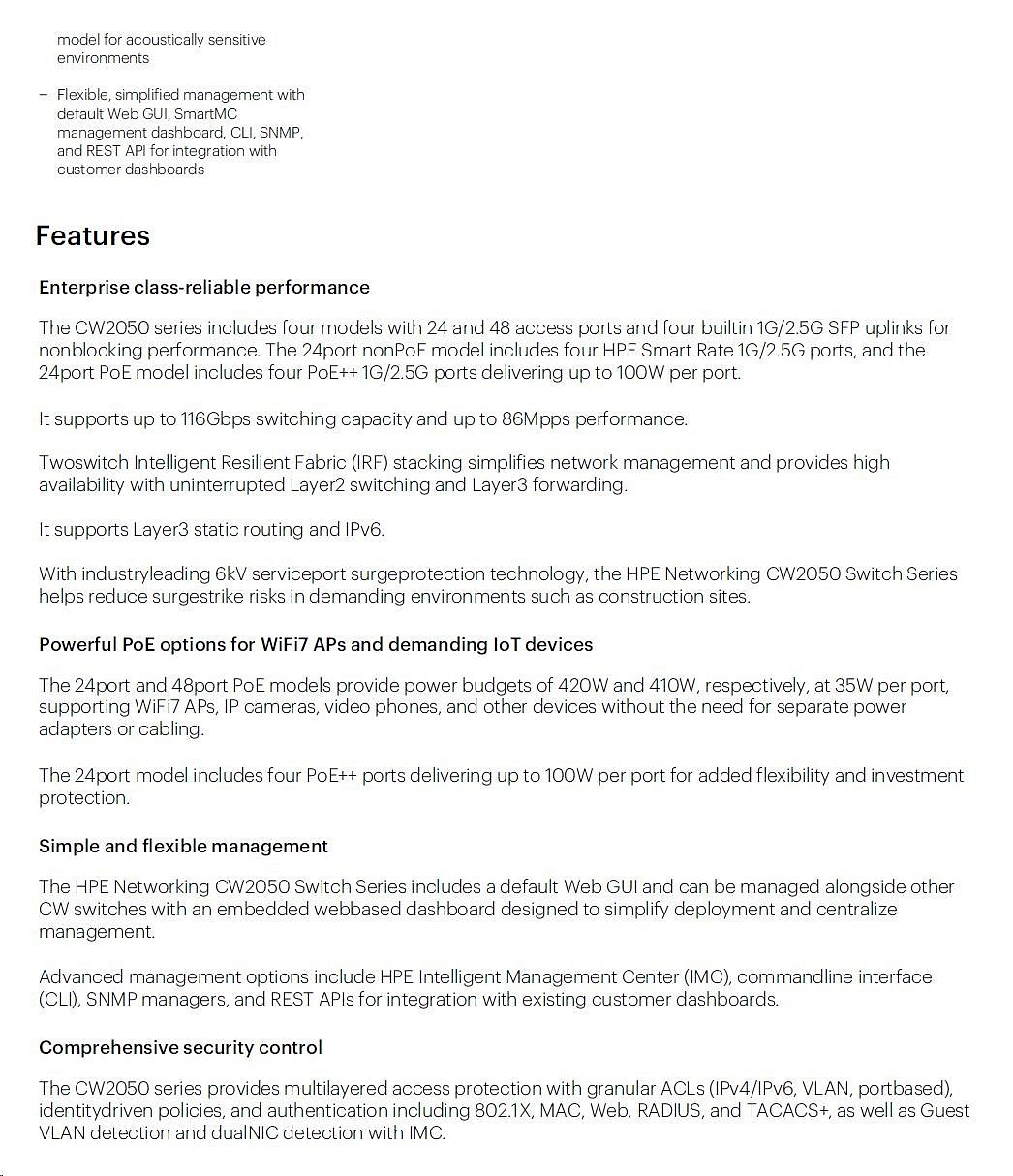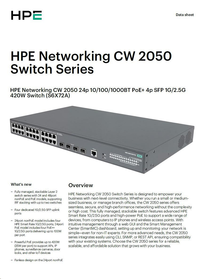Diskuze k produktu HPE Networking CW 2050 24p 10/100/1000BT PoE+ 4p SFP 1G/2.5G 420W Switch