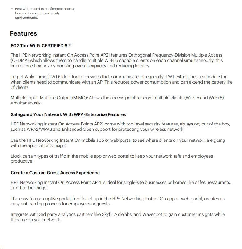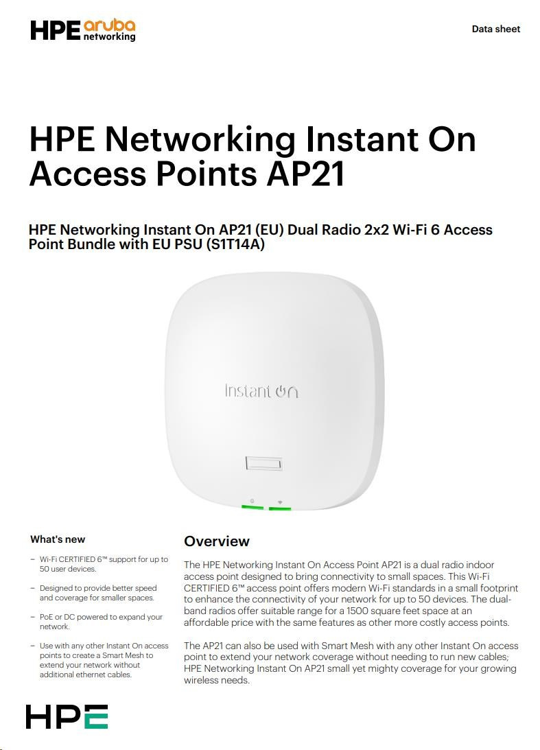 Diskuze k produktu HPE Networking Instant On AP21 (EU) Dual Radio 2x2 Wi-Fi 6 Access Point Bundle with EU PSU