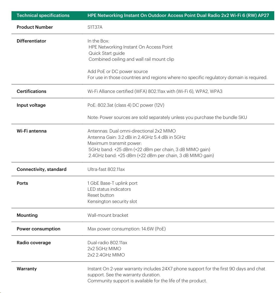 Diskuze k produktu HPE Networking Instant On AP27 (RW) Dual Radio 2x2 Wi-Fi 6 Outdoor Access Point (Powered with a PoE injector)