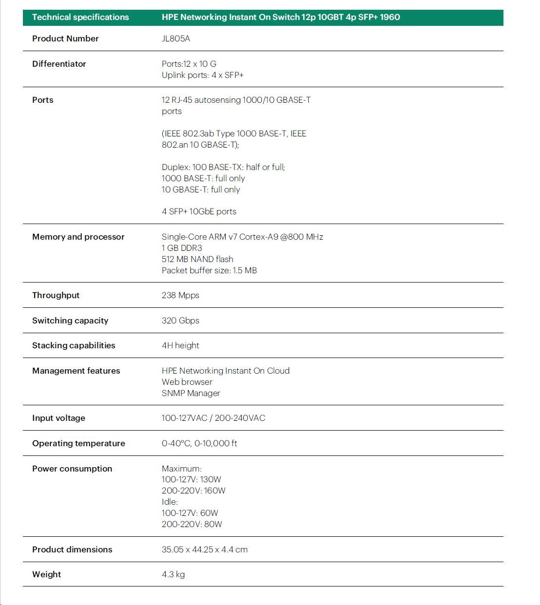 Diskuze k produktu HPE Networking Instant On Switch 12p 10GBT 4p SFP+ 1960 (JL805A)