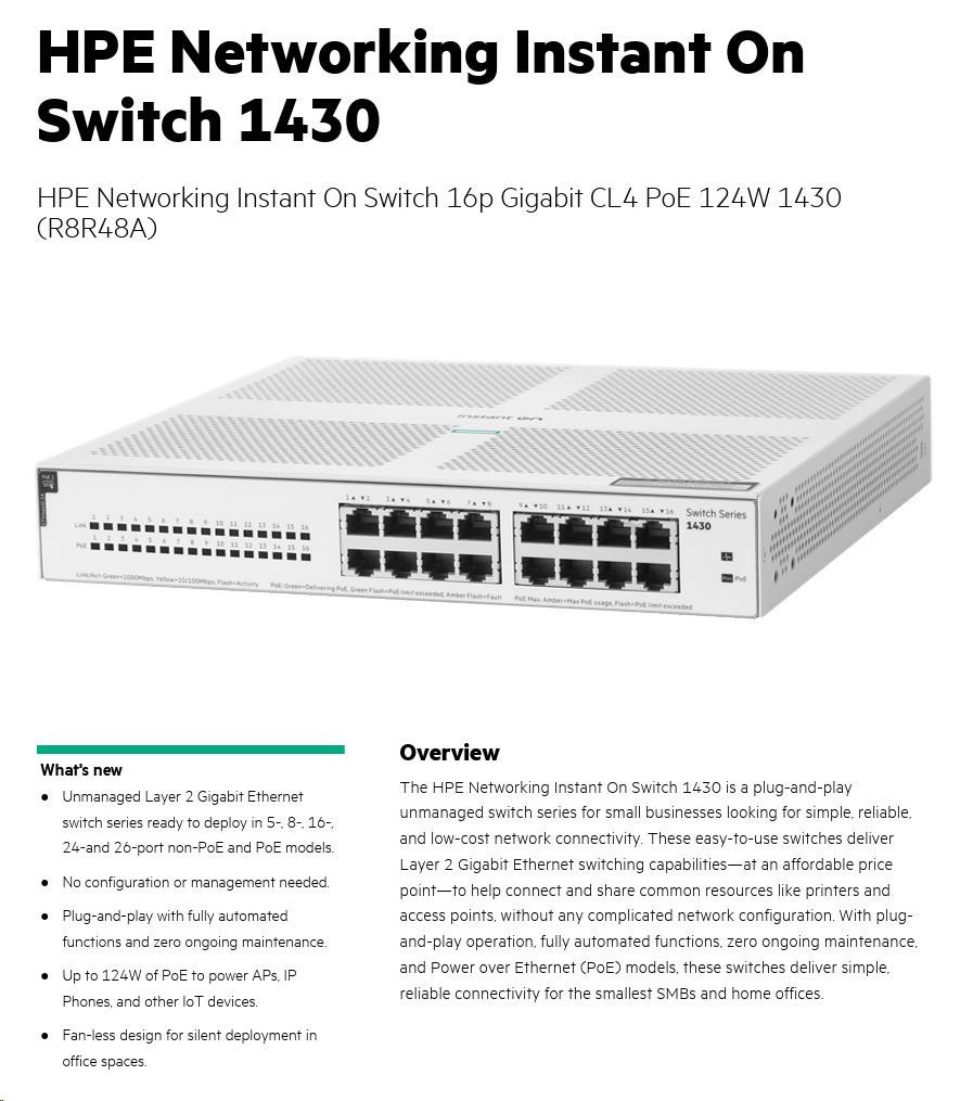 Diskuze k produktu HPE Networking Instant On Switch 16p Gigabit CL4 PoE 124W 1430