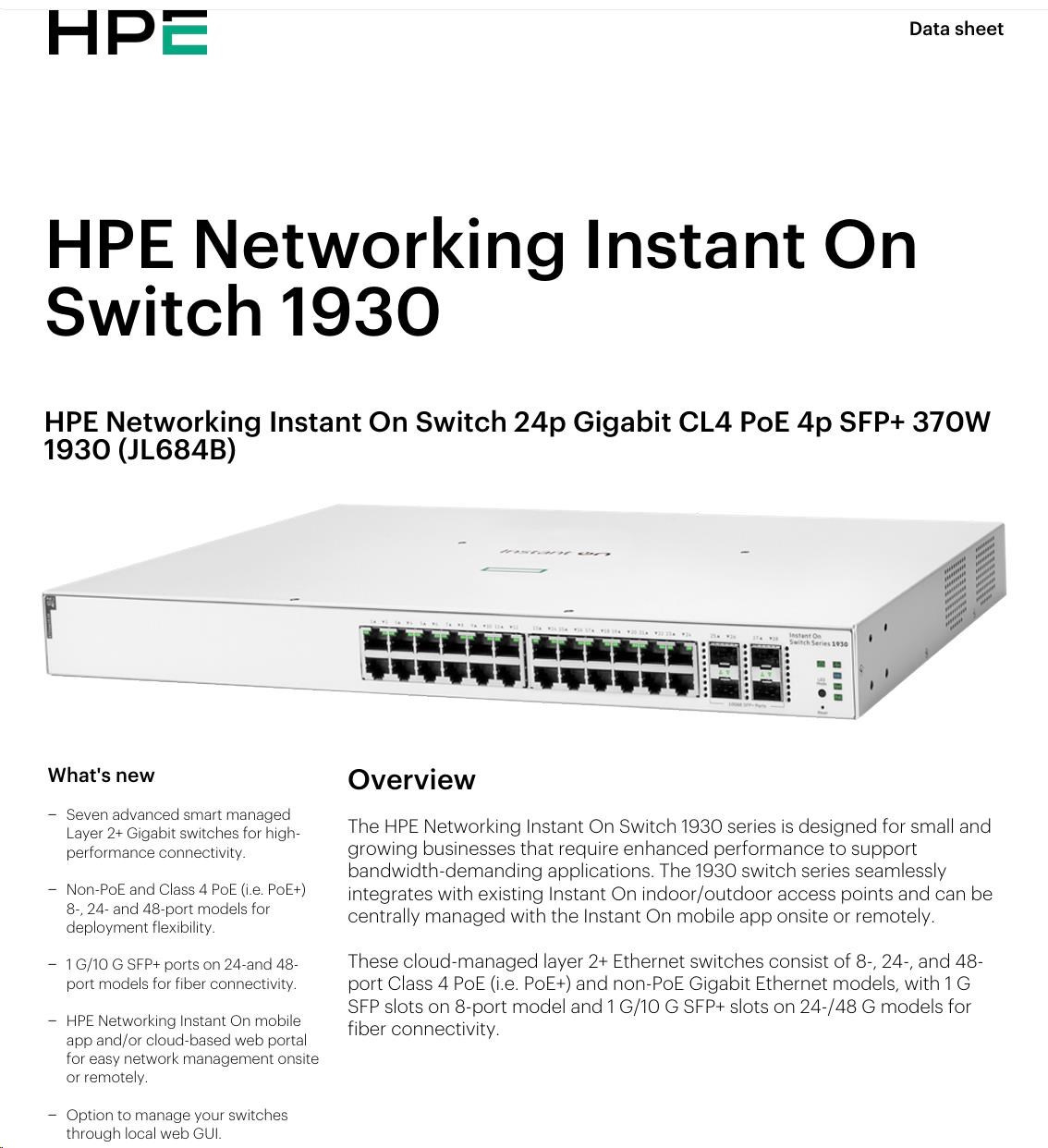 Diskuze k produktu HPE Networking Instant On Switch 24p Gigabit CL4 PoE 4p SFP+ 370W 1930 (JL684B)