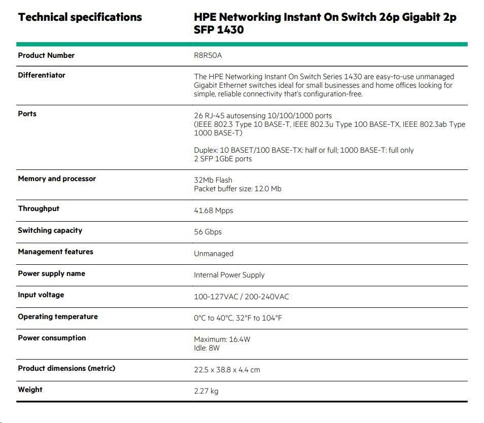 Diskuze k produktu HPE Networking Instant On Switch 26p Gigabit 2p SFP 1430 R8R50A