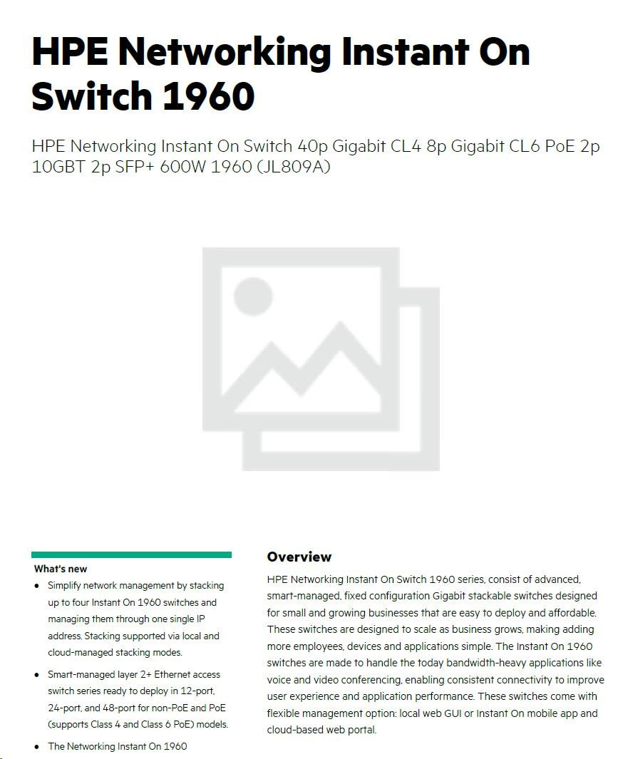 Diskuze k produktu HPE Networking Instant On Switch 40p Gigabit CL4 8p Gigabit CL6 PoE 2p 10GBT 2p SFP+ 600W 1960 (JL809A)