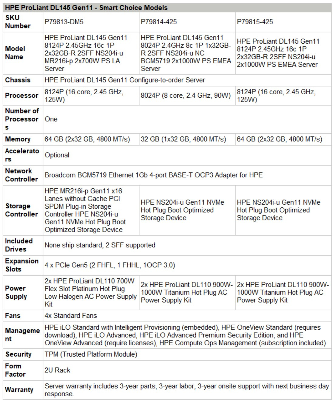 | Chassis | HPE ProLiant DL145 Gen11 Configure-to-order Server |