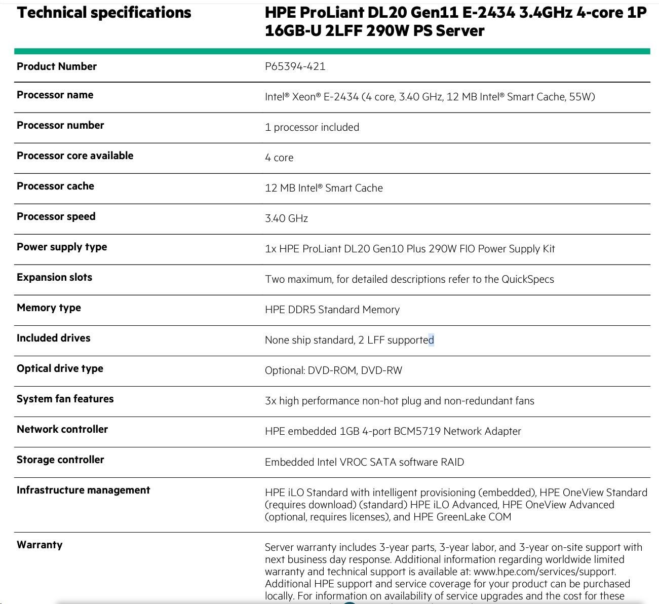 Diskuze k produktu HPE PL DL20g11 E-2434 (3.4G/4C) 16G (P64336) 2LFF-HP 290W 4p1G