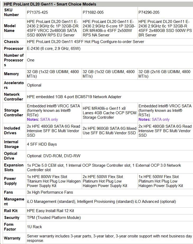 | HPE ProLiant DL20 Gen11 - Smart Choice Models | |