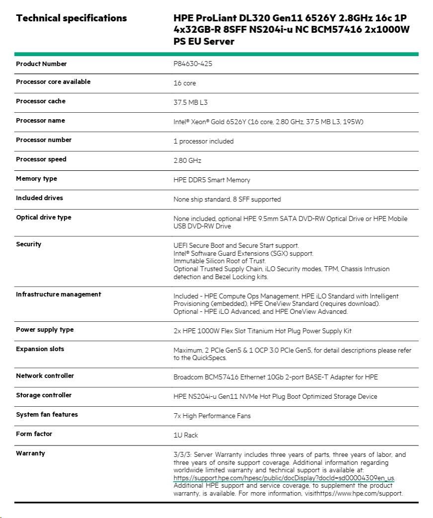 Diskuze k produktu HPE PL DL320g11 6526Y (2.8/16C) 4x32G (p64706) 8SFF NS204(2x480Gm.2) VROC 2x1000W 2p10GT 7F Smart Choice