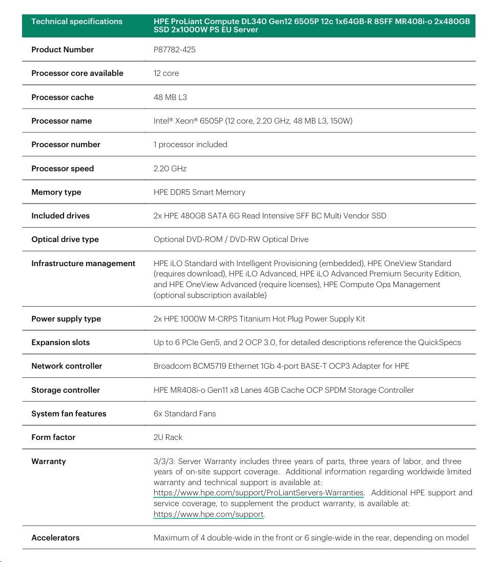 Diskuze k produktu HPE PL DL340g12 6505P (2.2/12C) 1x64G (P69728) 2x480G MR408i-o 8SFF 2x1000W 1GbE NBD333 Smart Choice