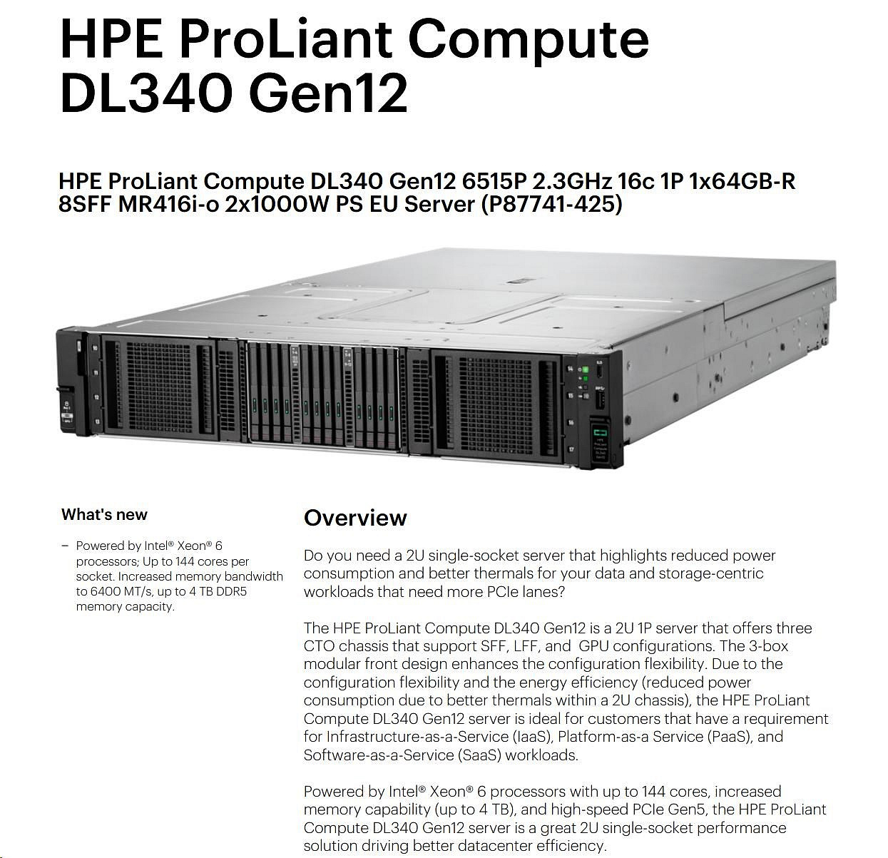 Diskuze k produktu HPE PL DL340g12 6515P (2.4/16C) 1x64G (P69728) NS204(2x480) MR416i-o 8SFF 2x1000W 2p10Gsfp+ PerfFans NBD333 Smart Choice