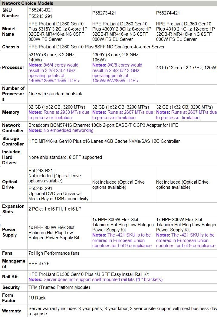 Network Controller Broadcom BCM57416 Ethernet 10Gb 2-port BASE-T OCP3 Adapter for HPE Notes: No embedded networking