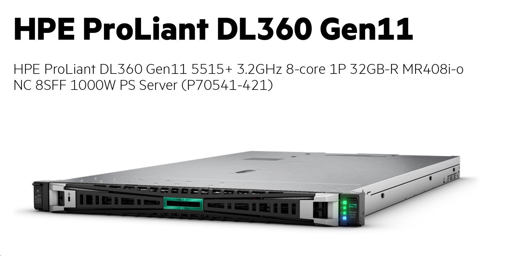 HPE PL DL360g11 5515+ (3.2/8C) 1x32G (p64706) MR408i-o/4G 8SFF 1x1000W 2p10T 1U P70541-421 RENEW