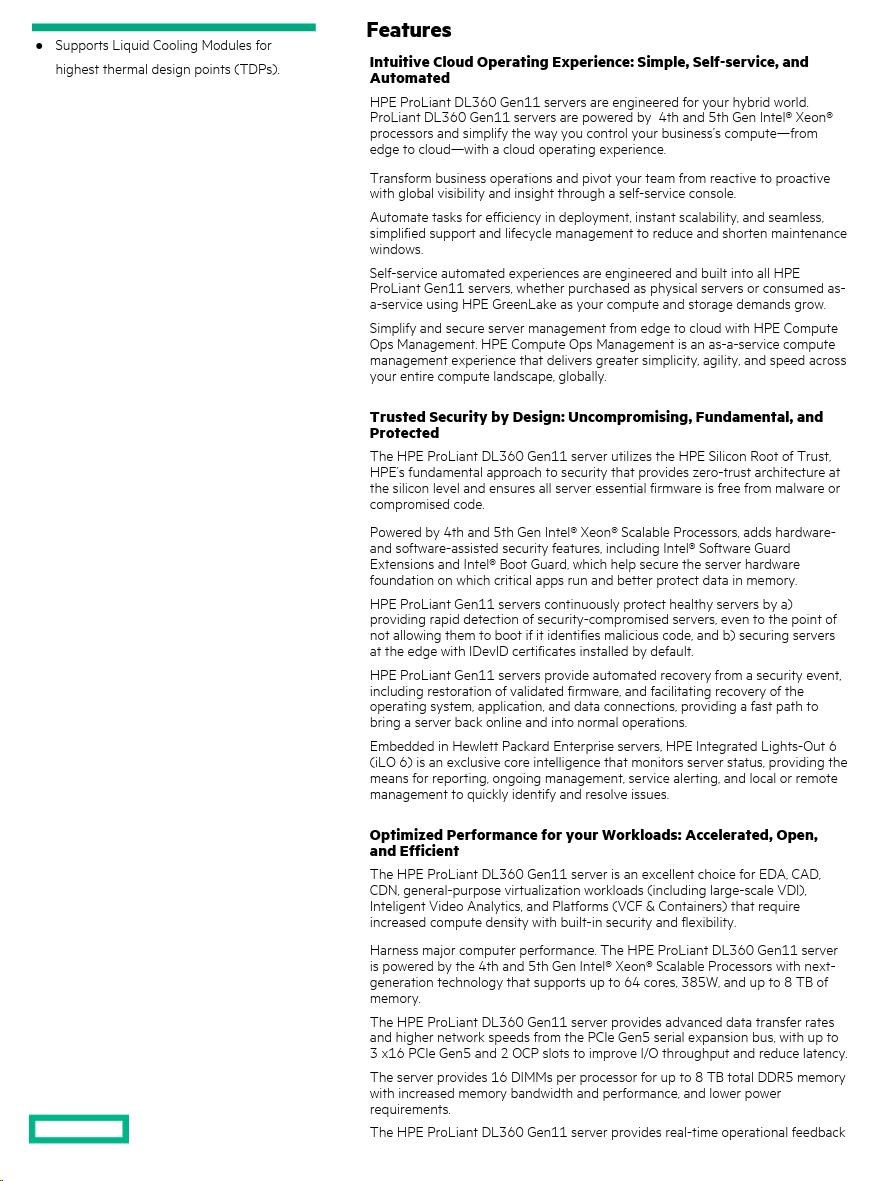 Technical Specifications: HPE ProLiant DL360 Gen11