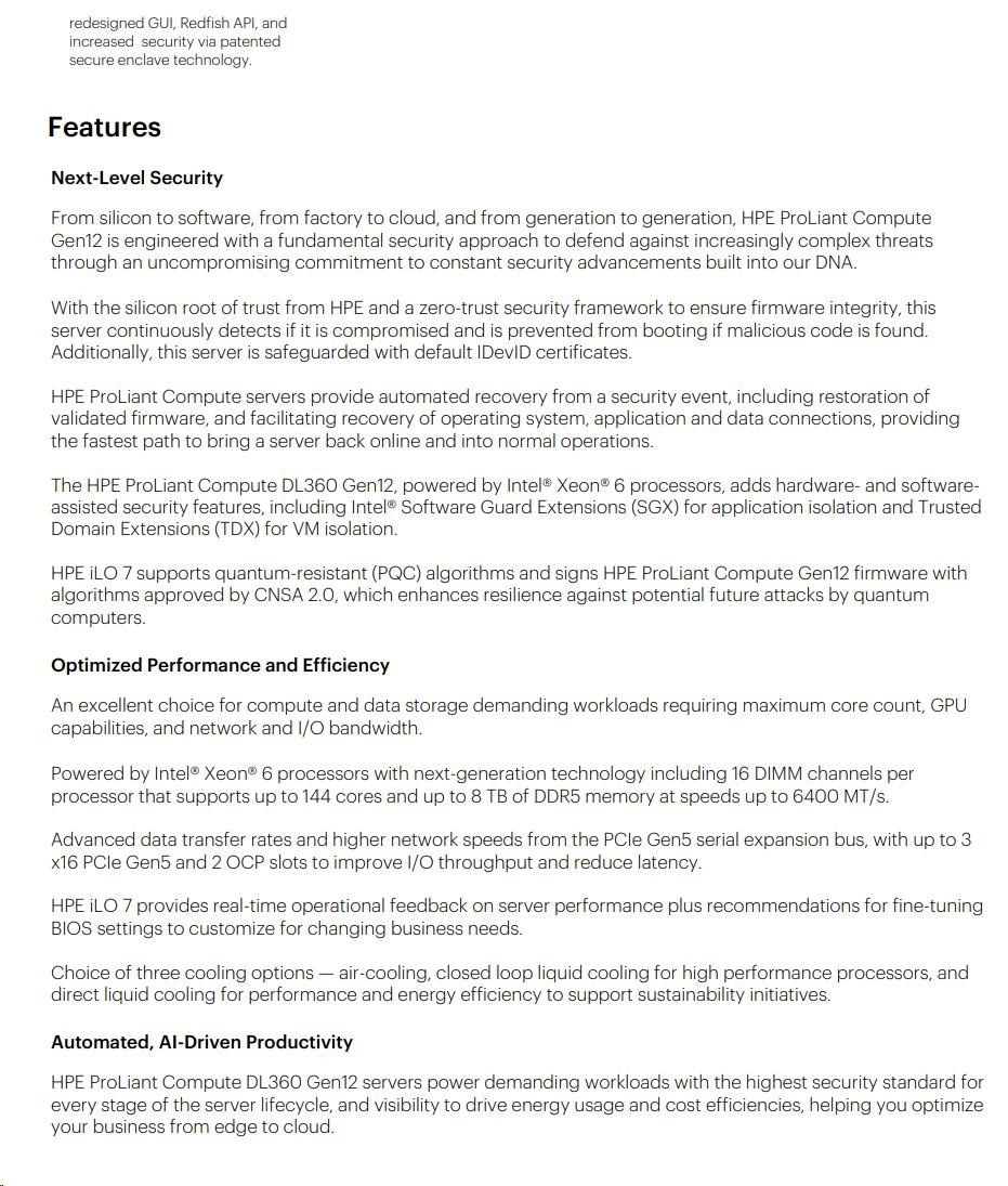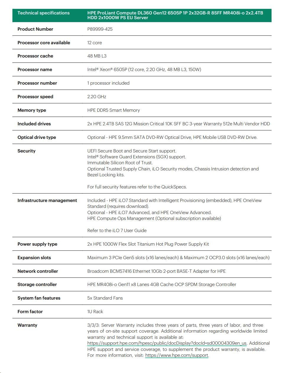 Diskuze k produktu HPE PL DL360g12 6505P (2.2G/12C) 2x32G (P69727) 2x2.4TB MR408i-o 8SFF 2x1000W 2p10GbE NBD333 Smart Choice