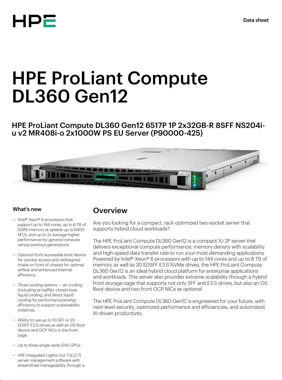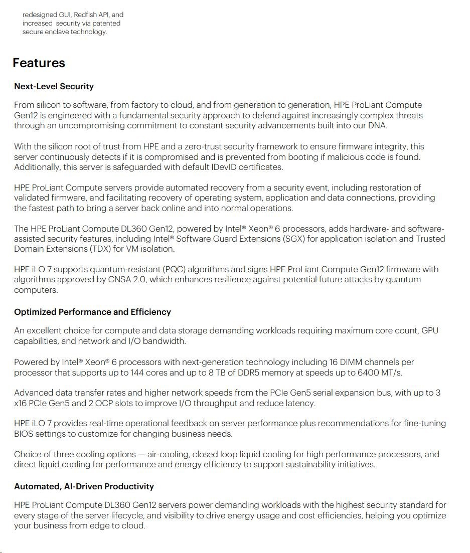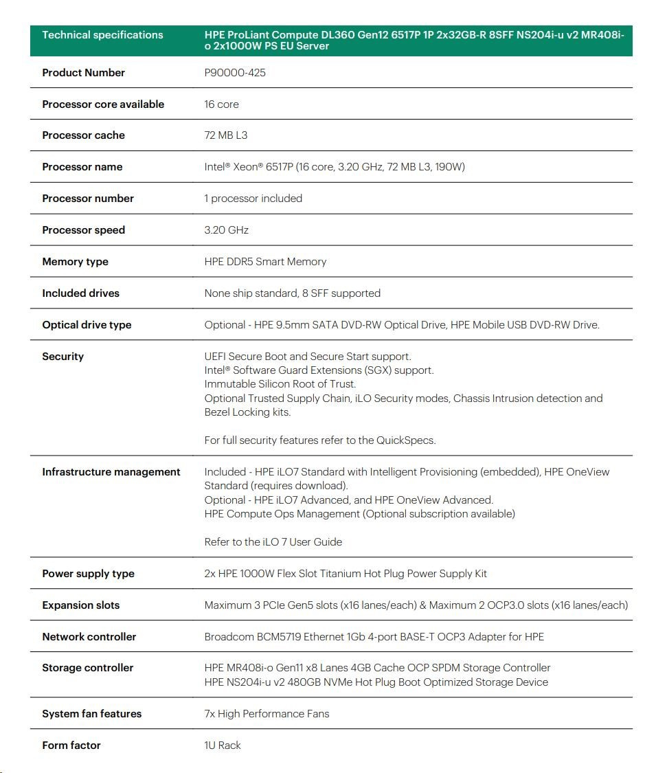Diskuze k produktu HPE PL DL360g12 6517P (3.2/16C) 2x32G (P69727) NS204 (2x480) MR408i-o 8SFF 2x1000W 4p1G NBD333 Smart Choice
