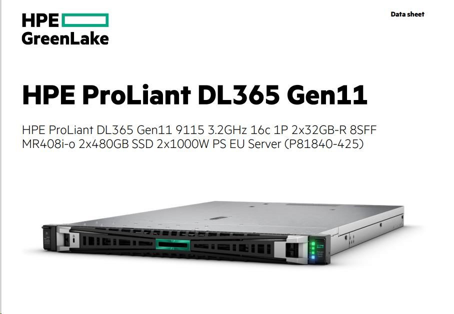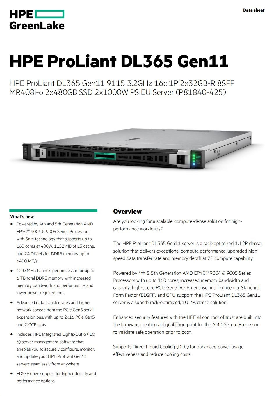Diskuze k produktu HPE PL DL365g11 AMD Epyc 9115 (2.6-4.1/16C) 2x32G-6400 2x480G MR408i-o/4G o2p10G-T 8SFF 2x1000W 1U Smart Choice