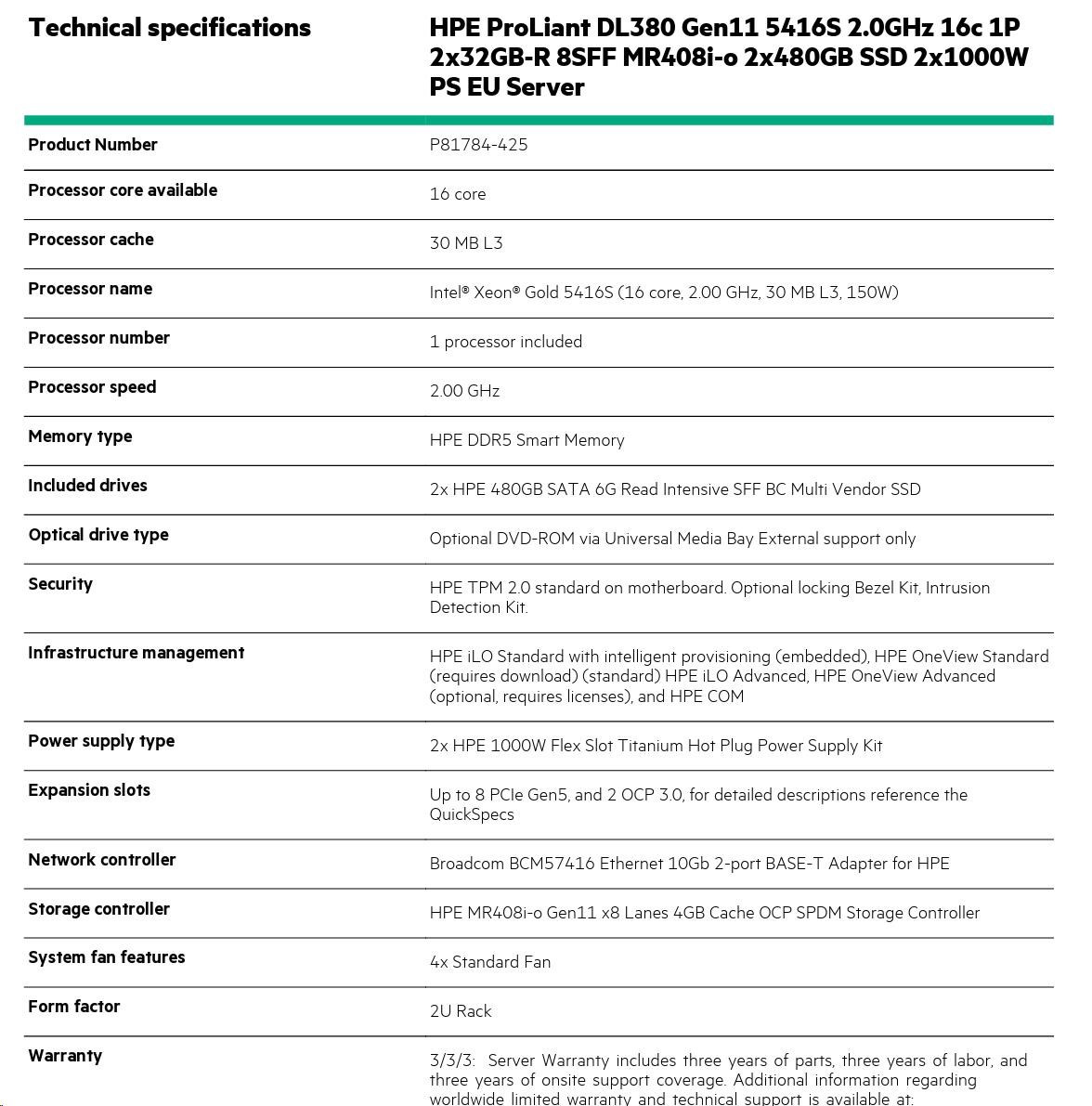 Diskuze k produktu HPE PL DL380g11 5416S (2.0/16C) 2x32G (P43328) 2x480G MR408i-o/4G 8-26SFF 2x1000W 2x10G-T 2U Smart Choice