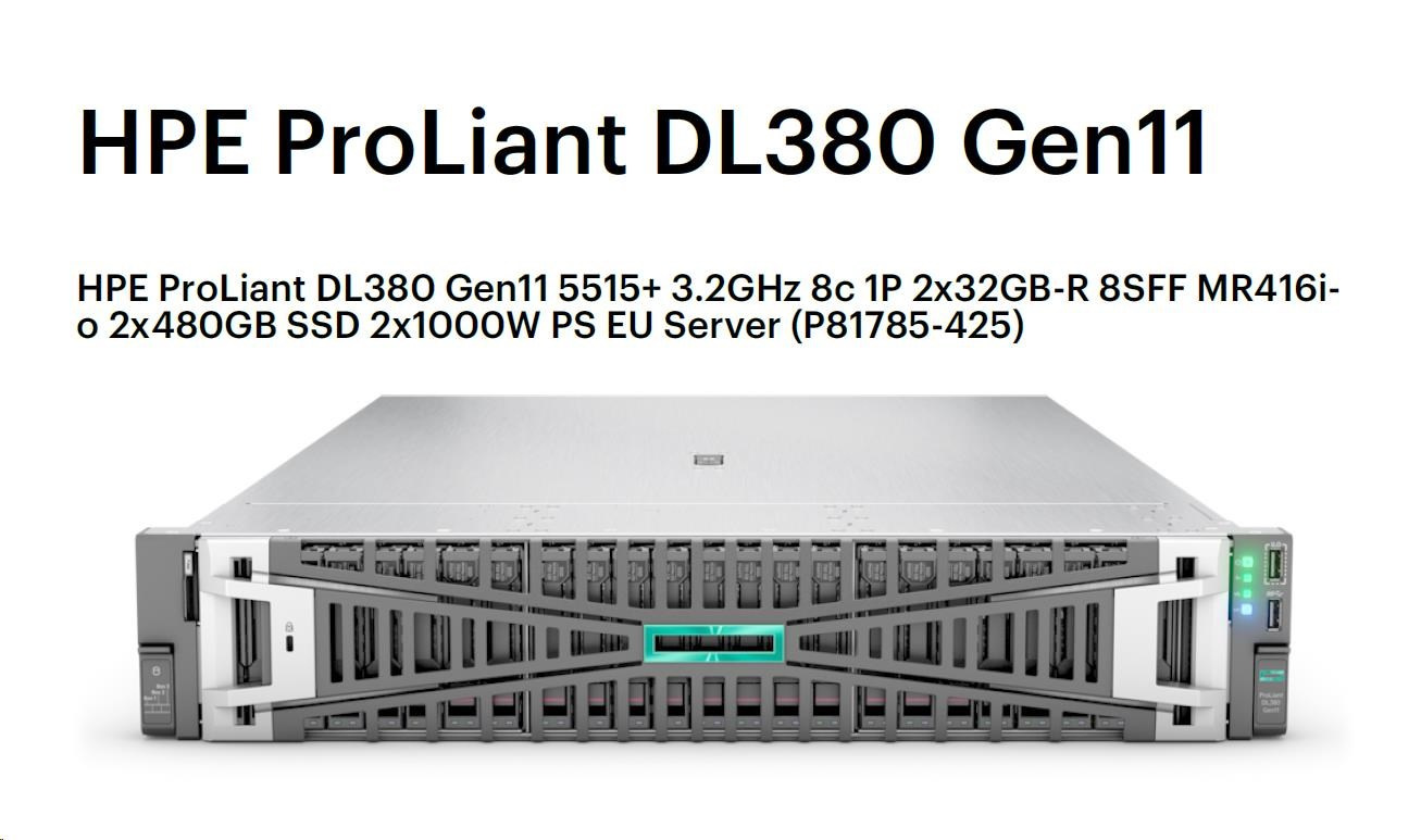 Diskuze k produktu HPE PL DL380g11 5515+ (3.2/8C) 2x32G (p64706) MR416i-o/4G 2x480G 2x1000W 2x10G-T Smart Choice