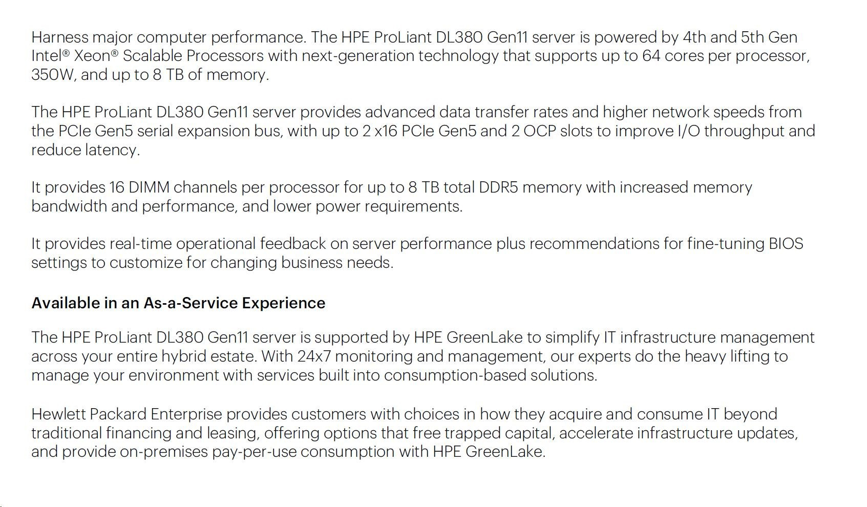 | Chassis | HPE ProLiant DL380 Gen11 8SFF NC Configure-to-order Server | |
